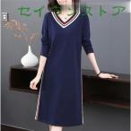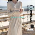 春 夏 ニットワンピ ゆったり Vネック レディース ニット ワンピース 長袖 ひざ丈ワンピース 女性 長袖ワンピース ミディアム丈 お洒落 シンプル
