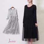 ワンピース レディース 長袖 チュール ひざ丈 ミディアム丈 チュールスカート チュールワンピース ロング 切り替え ルームウェア部屋着 無地 JOCOSA 8824