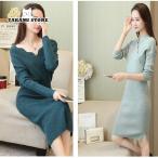 春 ニットワンピ 厚手 レディース ニットワンピース ミディアム丈 ワンピース ゆったり オフィス 長袖ワンピース 冬 秋 膝丈ワンピース シンプル