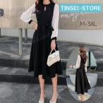 【時間限定10%OFFク一ポン】【送料無料】膝丈ワンピース 無地 きれいめ レディース 春秋 ミディアム丈 膝丈 ワンピース 大きいサイズ 暖かめ 厚め ハイネック 長袖 秋冬