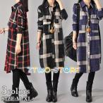 チェック柄 ロングシャツ ワンピース ミディアム丈 長袖 秋冬 ワンピース トップス レディース