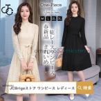 ワンピース レディース きれいめ 総レースワンピース 春 秋 冬 ミディアム丈ワンピース Aライン 長袖 フォーマルワンピース 結婚式 二次会 通勤 OL 40代 着痩せ