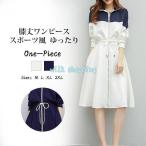 ワンピース レディース カジュアルワンピース スポーツ風 ドッキングワンピース ゆったり 体型カバー 膝丈 春ワンピース 長袖 大きいサイズ 綿