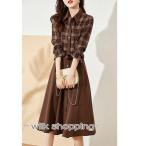ワンピース レディース きれいめ ワンピース 春 秋 冬 ミディアム丈ワンピース ハイウエスト 長袖 Aライン 二次会 通勤 OL 40代
