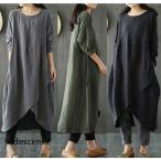 夏ワンピース 30代 40代 50代 長袖 きれいめ ゆったりリネンワンピース ゆったり ミディアム丈