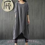 夏ワンピース 30代 40代 50代 長袖 きれいめ ゆったりリネンワンピース 株式会社錦ゆったり ミディアム丈