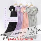 ワンピース レディース ロング丈 マキシ丈 ミディアム パッド付 カップ付き 半袖 長袖 ラウンドネック 無地 ゆったり ゆとり ゆるい シンプル