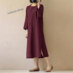 一掃 ワンピース ワンピ 長袖 ミディアム 秋 レディース ロング カジュアル おしゃれ 可愛い 体型カバー 大人 ゆったり 重ね着