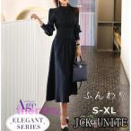 ワンピース レディース きれいめ フォーマルワンピース 春 秋 冬 ミディアム丈ワンピース ハイウエスト 長袖 Aラインワンピース 二次会 通勤 OL 40代 着痩せ