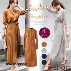 ワンピース 春物 秋 きれいめ レディース フォーマル 長袖 シャツ 秋物 Aライン ロング丈 プリーツ ハイウエスト 二次会 通勤 OL 50代 着痩せ フェミニン