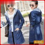 ジャケット コート デニム レディース ロング 長袖 フード付き Gジャン アウター ジージャン 綿混 きれいめ ミディアム丈 着痩せ 可愛い 秋服