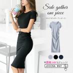 ワンピース レディース 半袖 ひざ丈 ミディアム丈 ギャザー 無地 タイト セクシー 春 夏 シンプル 綿 コットン カジュア グレー ブラック 黒 JOCOSA 8812