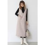 ベスト レディース 秋冬 前開き おしゃれ Vネック 黒 白 ツイード風 ポケット ワンピース ミディアム