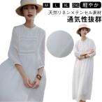 ワンピース 白ワンピース ホワイトワンピース 夏用 ミディアム丈 ワンピース ロングワンピース リネンワンピース 七分袖 ふんわり 可愛い 清楚感 ナ