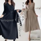 秋 ニット ワンピース ニットワンピース ミディ丈 ミディアム ロングワンピース プリーツ ボタン Vネック きれいめ 【 ベルトプリーツニットワンピース 】