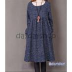 ワンピース レディース 長袖 ロングワンピース 綿麻ワンピース マキシワンピース ゆったり 春秋 きれいめ Aライン 上品 二次会 通勤 OL 着痩せ