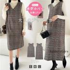 ジャンパースカート vネック 大人 ジャンスカ レディース ジャンスカワンピース ワンピース きれいめ チェック柄 選べる長さ スカート ロング ミディアム ノ