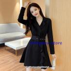 【最安挑戦!55%OFF&5271円→2761円!】レディース ワンピース Aラインワンピース フォーマル パーティードレス ひざ丈 体型カバー 大き目襟 ボタン ひざ丈 ミディアム丈 韓国 秋服 春服 夏服 冬服 30代 40代 20代 結婚式 ブラック 黒 ピンク