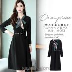 ワンピース レディース 秋 膝丈 Aラインワンピース リボン付き ベルト付き 着痩せ きれいめ お洒落 通勤 OL ビジネス 入学式 卒業式 上品 大人 30代 40代