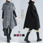 ニット ベスト レディース 重ね着 ジャンバースカート キレカジ ポケット ミディアム丈 膝丈 ワンピース Vネック 秋冬 カジュアル レディース