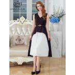 交換無料 | 韓国製 リンファーレ | ミディアム ドレス タイト ひざ丈 ワンピース ネイビー 肩リボン 無地 ノースリーブ シンプル ウエストタック キャバドレス