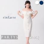 交換無料 | 韓国製 リンファーレ | タイト ミディアムドレス ワンピース オフショルダー フリル ジャガード ホワイト ネイビー 紺 白 キャバドレス mynv