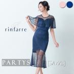 交換無料 | 韓国製 リンファーレ | ミディアムドレス ワンピース 七分袖 クロス リボン 総レース 膝丈 タイト