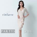 交換無料 | 韓国製 リンファーレ | ミディアム ドレス タイト ひざ丈 ワンピース ベージュ ビジュー 七分袖 フリル Vネック パーティードレス myju