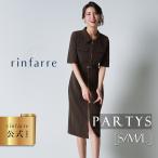 交換無料 | 韓国製 リンファーレ | ミディアムドレス ワンピース ブラウン 五分袖 襟付き ファスナー タイト