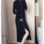 ワンピース レディース ロングワンピース Aライン ファスナー付き スリット ニット タイトワンピース 大人 上品 ミディアム丈 春 秋 冬 ワンピ 長袖 大きいサイ