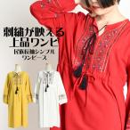 ワンピース レディース 長袖 春 夏 花柄 刺繍 アジアン エスニック 無地 長袖ワンピース チュニック フレアワンピース ロング ボヘミアン