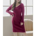 ワンピース ミディアム丈・ベルスリーブVネックニットワンピース/23528