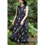 レディース マキシワンピース ミディアム綿麻風 リネンワンピース ワンピース ゆったり ミディアム ロング カジュアル 長袖 チェック