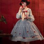 ロリータファッション ワンピース のみ ひざ丈 ミディアム 刺繍 レトロ 森ガール 童話風 お嬢様 かわいい ガーリー 上品 夏コーデ お茶会 デート ピクニック