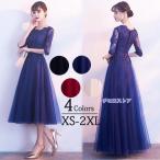 ミモレ丈ドレス パーティードレス レディース ワンピース S~2XL ミディアム 発表会 演奏会 披露宴ドレス 大きいサイズ お呼ばれ