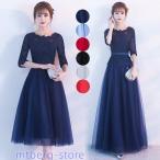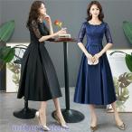 パーティードレス 大きいサイズ 20代 30代 結婚式 ラウンド 袖あり 母親 フォーマル レース 体型カバー ミモレ丈 成人式 花嫁 二次会 演奏会 披露宴 発表会