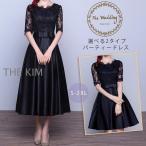 パーティードレス 袖あり 結婚式 ワンピース ドレス レース aライン ミディアム丈 フォーマルドレス 黒 大きいサイズ お呼ばれ 二次会 発表会 服