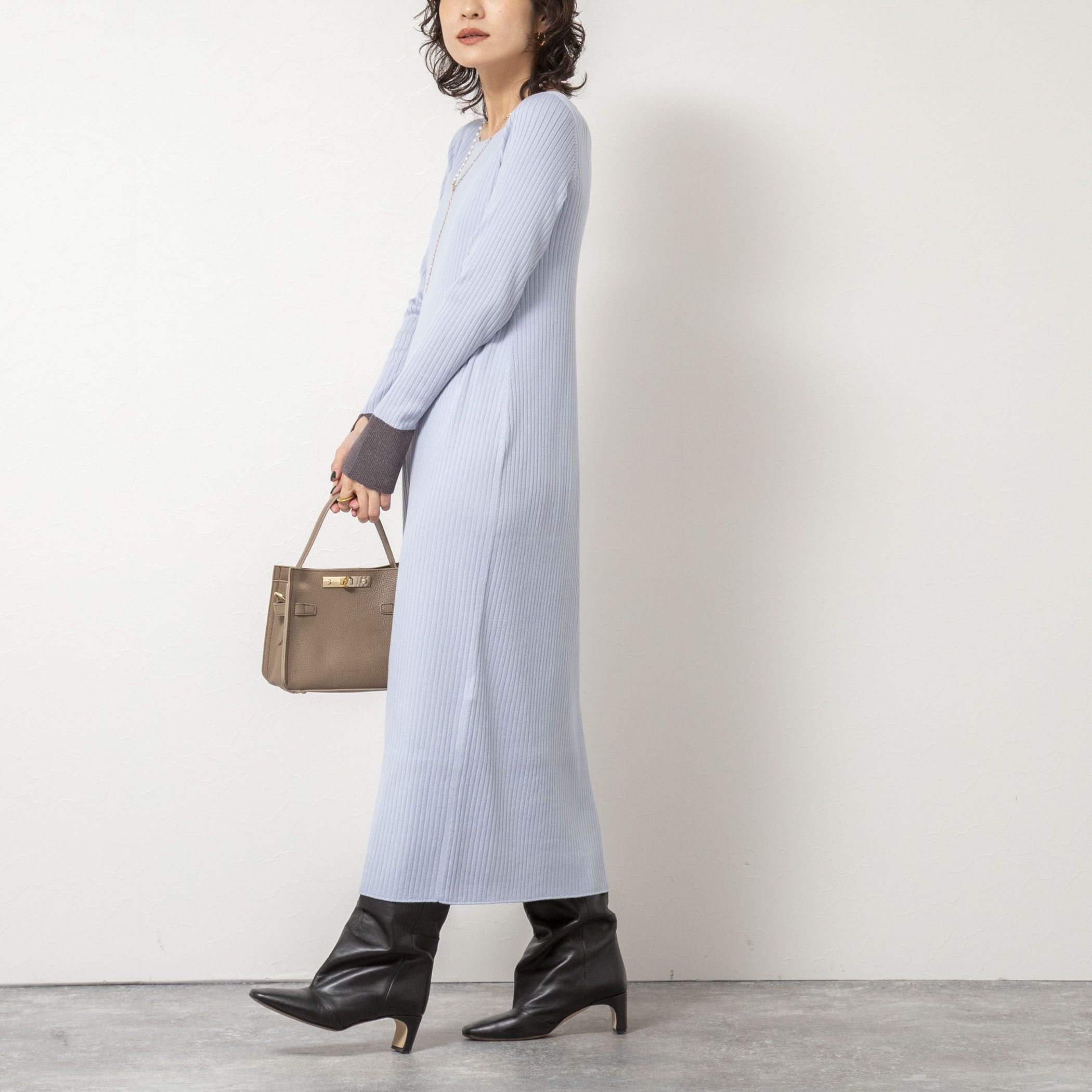NOLLEY’S sophi(ノーリーズソフィー)/《手洗い可能》ウール混ワイドリブ袖口配色ロングワンピース