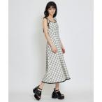 ワンピース パイピングリボンキャミソールチェックフレアロングワンピース