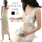 ワンピース レディース ニットワンピース キャミソールワンピース ロングワンピース ミモレワンピース ノースリーブ キャミワンピ Vネック リブニット