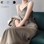 キャミワンピ レディース サテン キャミワンピース ロング丈 ワンピース ノースリーブ キャミソール ロングワンピ サマーワンピース