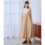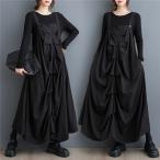 ワンピース ノースリーブ レディース ロングワンピース キャミソールワンピース レイヤード フェイクスウェード 「メール便不可」「30」