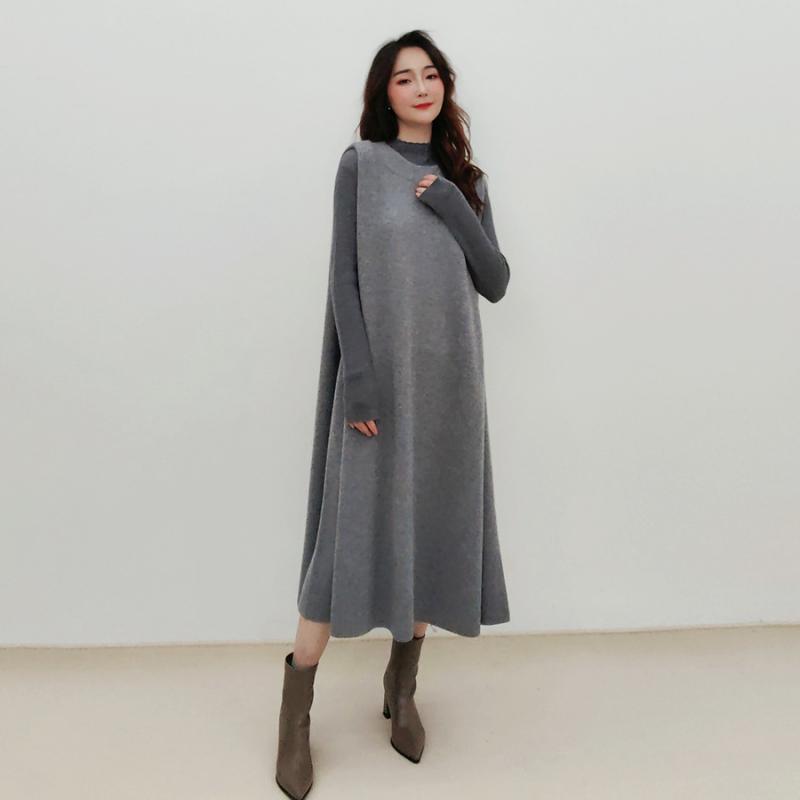 ワンピース レディース 秋冬 ゆったり Aライン 肩パッド 丸首 羊毛 無袖 キャミソール ロング シンプル 重ね着 日常使い 吸湿速乾 軽量