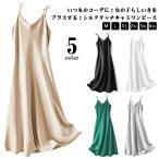 キャミソール ワンピース レディース サテン風 インナーワンピース ワンピース Vネック キャミワンピ 無地 ロング丈 ペチコート インナー キャミソ
