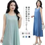 ワンピース ひんやり ロングワンピース ノースリーブ 薄手 ワンピース Aライン レテ?ィース 接触冷感 マキシ丈 ロング タンクトップ キャミソール