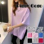 トップス レディース 袖あり Tシャツ 半袖 カジュアル おしゃれ 可愛い クルーネック カットソー サイドスリット 細見え 薄手 ピンク ブルー ブラック ホワイト