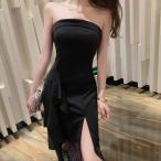 レディース ドレス チューブトップ ワンピース サマードレス ロング丈 ロングスカート ハイウエスト ノースリーブ フリル レース スリッ