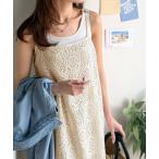 ワンピース すっきり、華奢見え。華やかパネルレースキャミワンピース