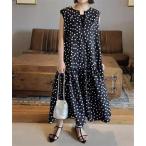 ワンピース ノースリーブ ドット柄ロングワンピース