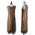 プリーツプリーズPLEATS PLEASE 滲みストライププリントノースリーブロングワンピース 黒オレンジ他3 【レディース】